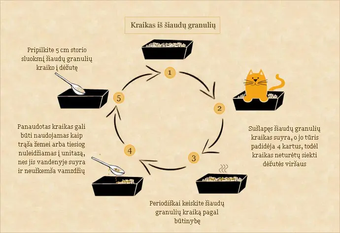 -Šiaudų granulės sugeria ne tik skystį, bet ir kvapą.