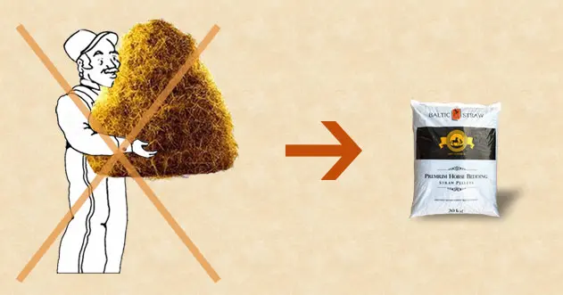 -Rekomenduojame bent 4 kartus per metus pakeisti visą seną pakratą ir pakeisti jį nauju ir šviežiu „Baltic Straw Premium Horse Bedding”.